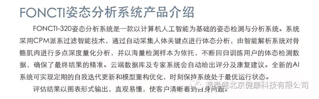 鸿泰盛(北京)健康科技有限公司将隆重出席第30届CHINA MED展览会,并展出我司最新姿态评估系列产品FONCTI-320和FONCTI-630,带给您不一样的体态评估体验。此外,人体成分分析仪系列,足底压力分析仪和超声骨密度等产品也将闪亮登场。